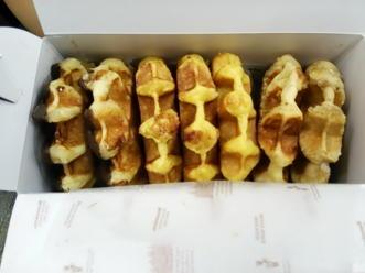 沢山のワッフルが!!!左からチョコレート(2個)・メープル(2個)・アーモンド・プレーンです。