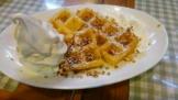 ここでは初めて、お食事ワッフルをいただきました!上からベーコンワッフル・野菜ワッフルです。