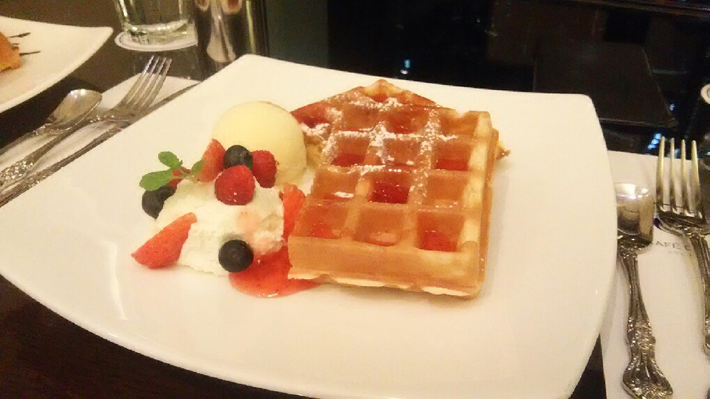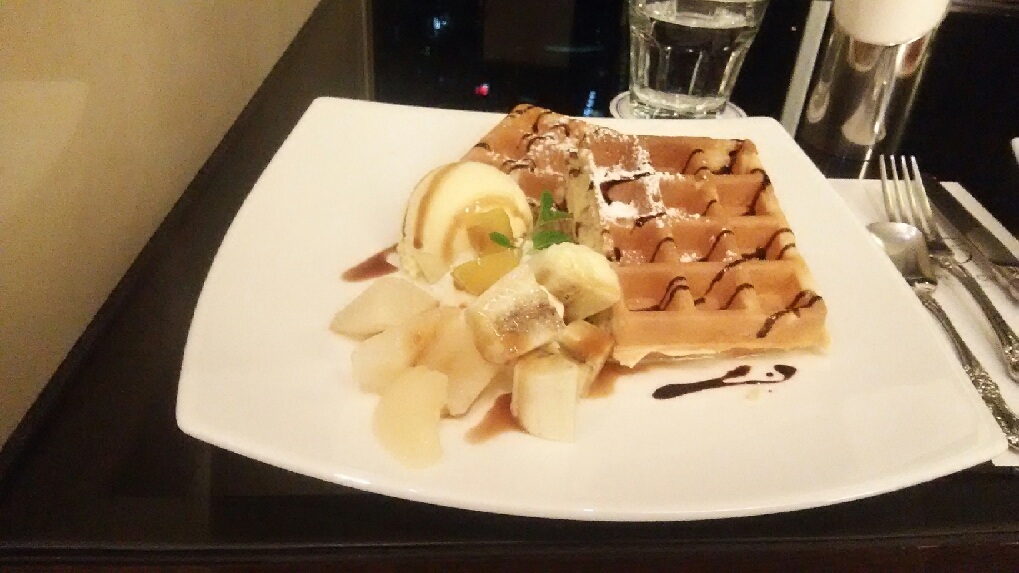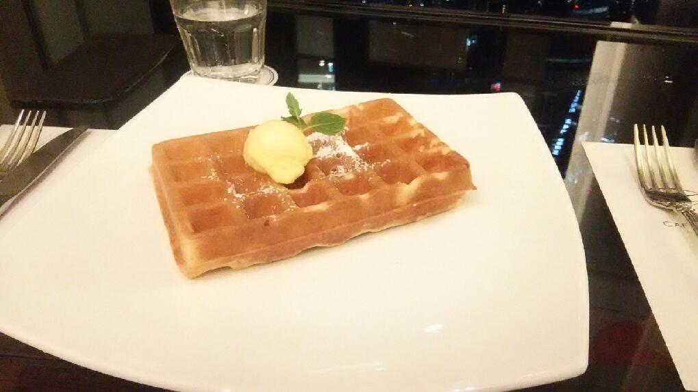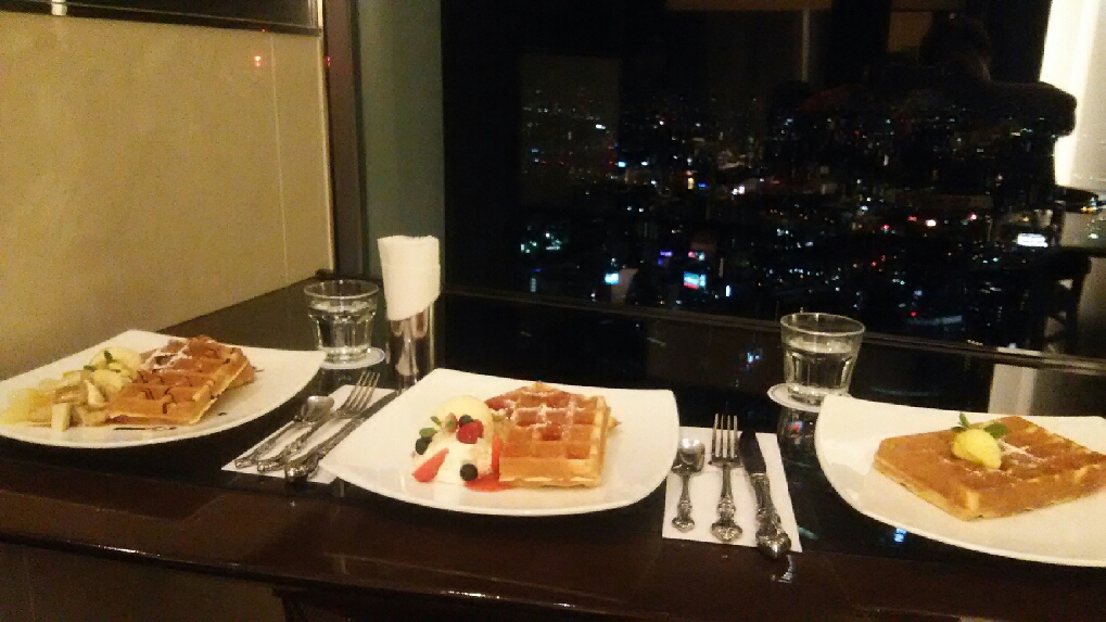 美しい夜景とワッフルのコラボレーションです!贅沢な気分で美味しいワッフルをいただけます。