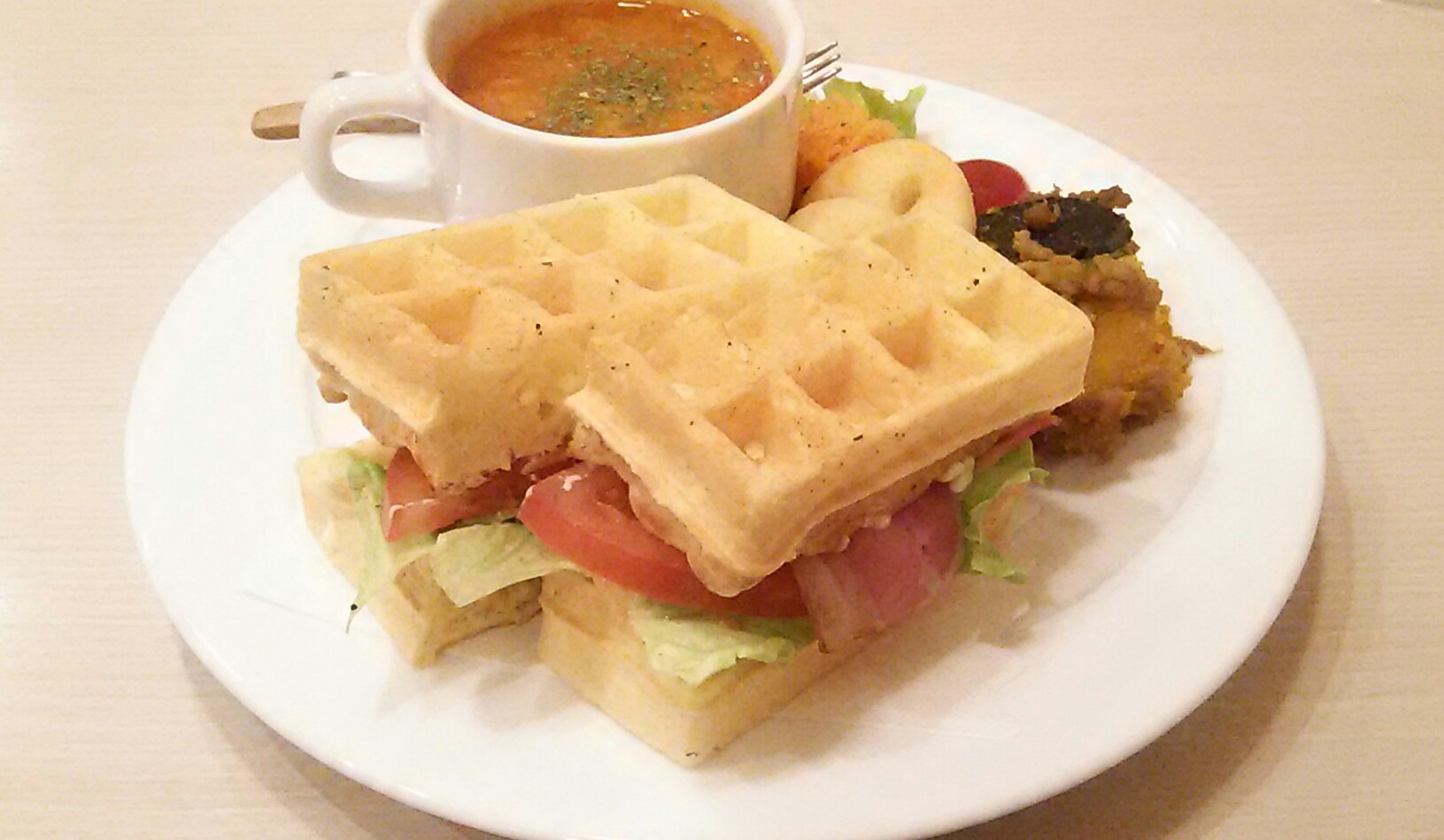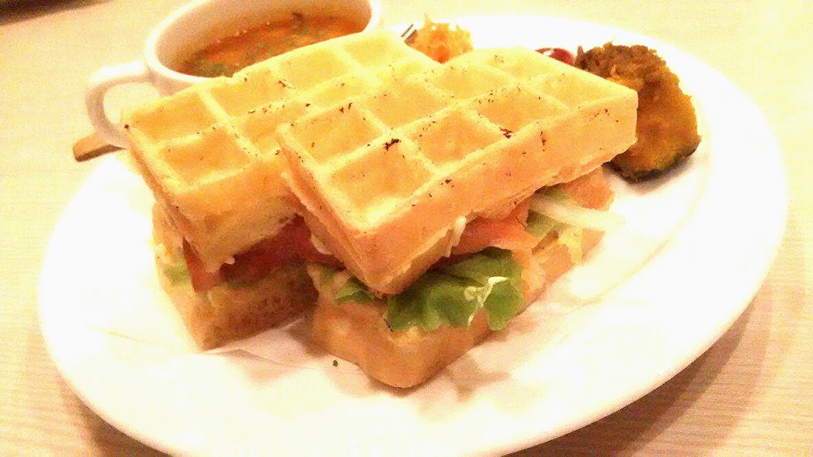 お食事ワッフルはここでも紹介してますが、まさかワッフルのサンドイッチがあるとは思わなかったので、驚きでした!!